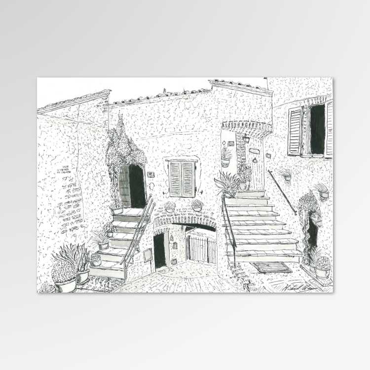 This is a collection of my currently available artwork. I have lovingly crafted each piece by hand using archival-grade India inks and watercolors. Many of these pieces showcase the beauty of the medieval village of Pari, located in the heart of Tuscany, Italia.