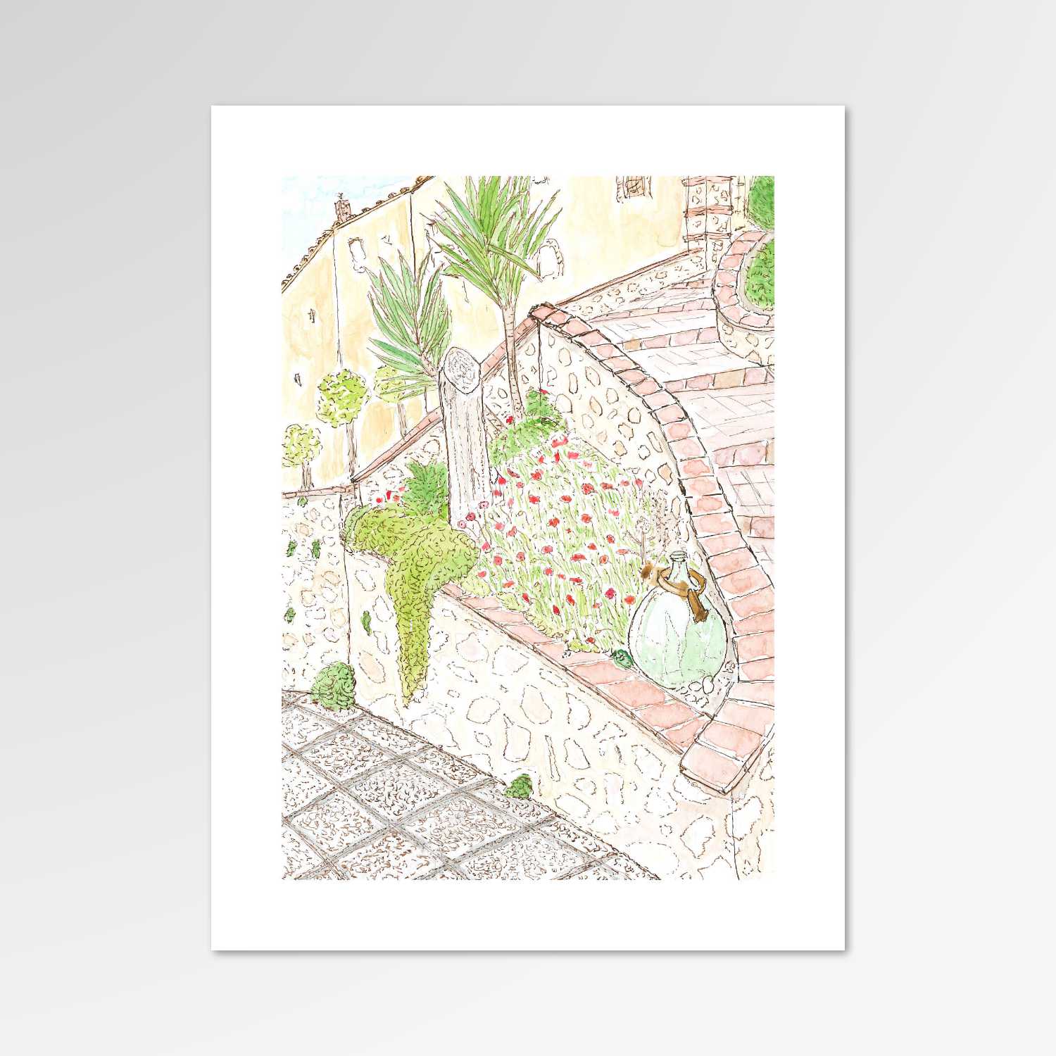 This is a painting of another set of stairs in the medieval village of Pari, Italia. This set of stairs leads up from the lower giro up underneath the archways of Il Museo until it finally pops out at where the arches intersect with the upper giro. I was fortunate enough to see the poppies (i papaveri) when they were in full bloom in the springtime, flooding the area between the lower giro and the stairs with a swath of color.