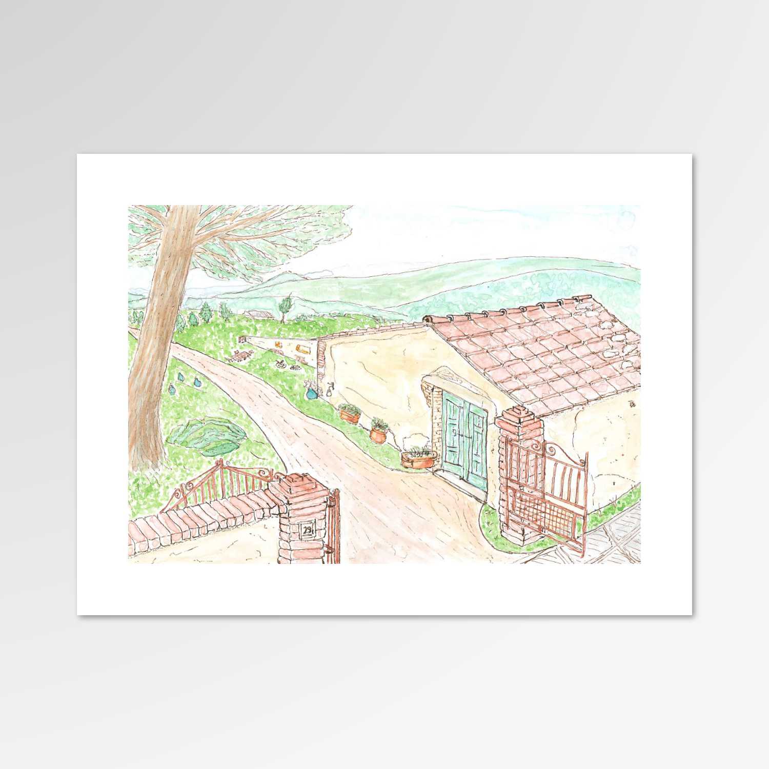 This was my third and final attempt at painting the old manger in Pari, Italia. In this version, I opened up the gate and matched the maroon to the color of the original gates to make the painting feel more inviting. I also opened up and added more detail to the salt pine, while adding additional trees and shrubs to give visual variety to the background. I was also very careful with the color mixing and application and focused on recreating texture by layering the colores in the roof and walls.