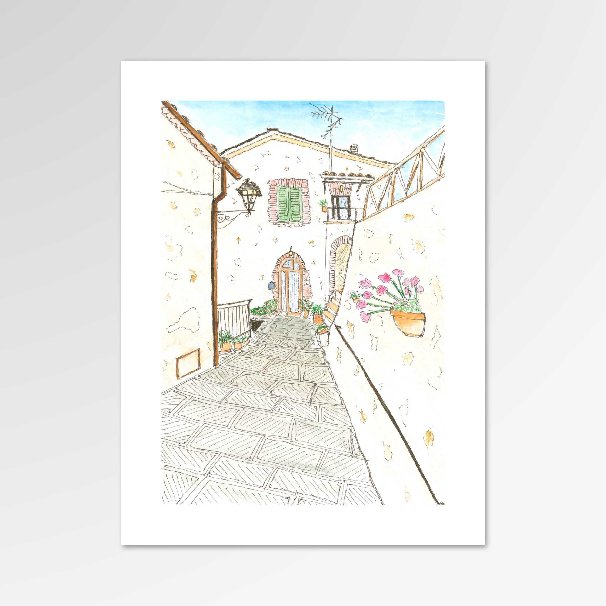 It took me almost a full week to find this little path when I first visited Pari, not because it was hidden, but just because it looked like it led to nowhere from either end. This path is part of one of three ways to walk up to the palazzo, while one goes past the old well (pozzo) by the church, and another is by the brick stairs, this one leads up from a small set of stairs that is right near the community room of the residence association. During the winter, this way tends to be lit by lights, which are replaced in the summer by various potted plants.