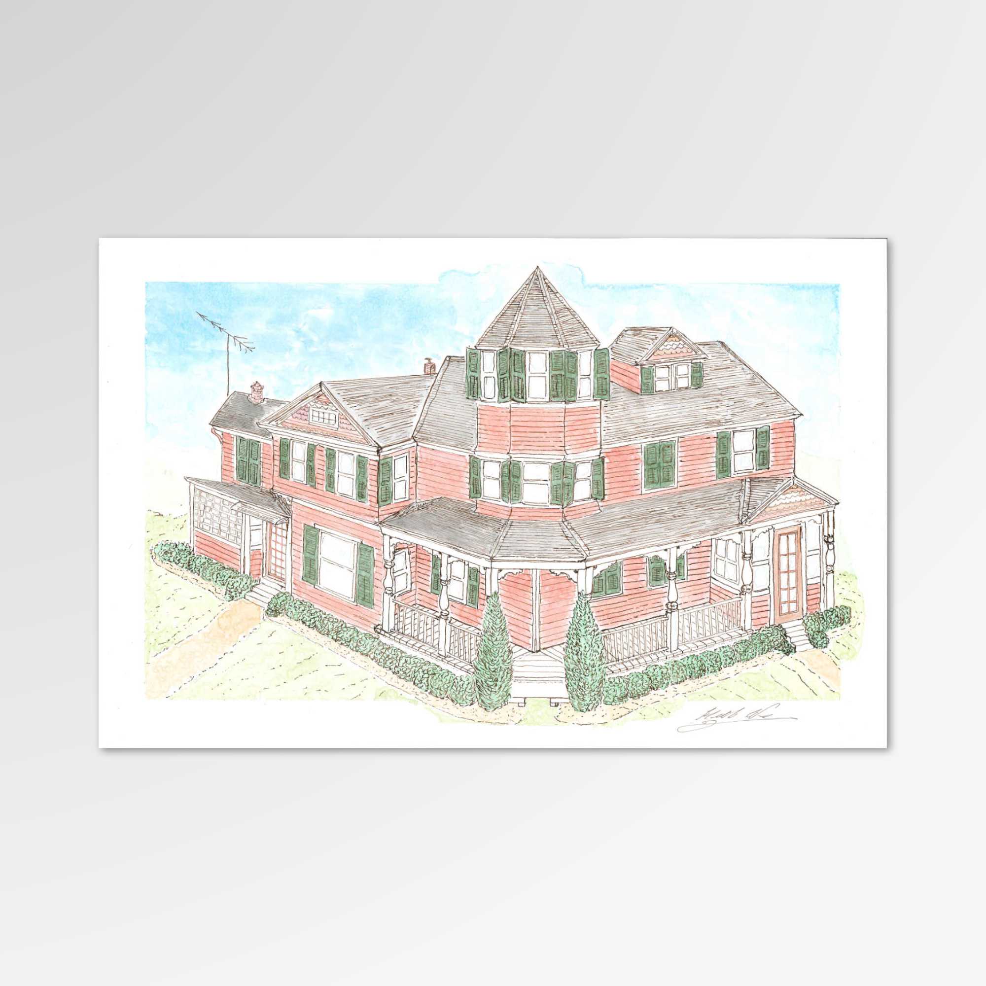 This is the final version of the Victorian commission. This was the largest piece that I had painted up until this point, at a whopping 11”x17”. Yet it was absolutely necessary to capture the proportions and details of this magnificent house. All the colors, with the exception of the grey/black roof, were mixed by hand. I even went so far as to match the color of the house to the color of the paint chips the owners brought in as samples.