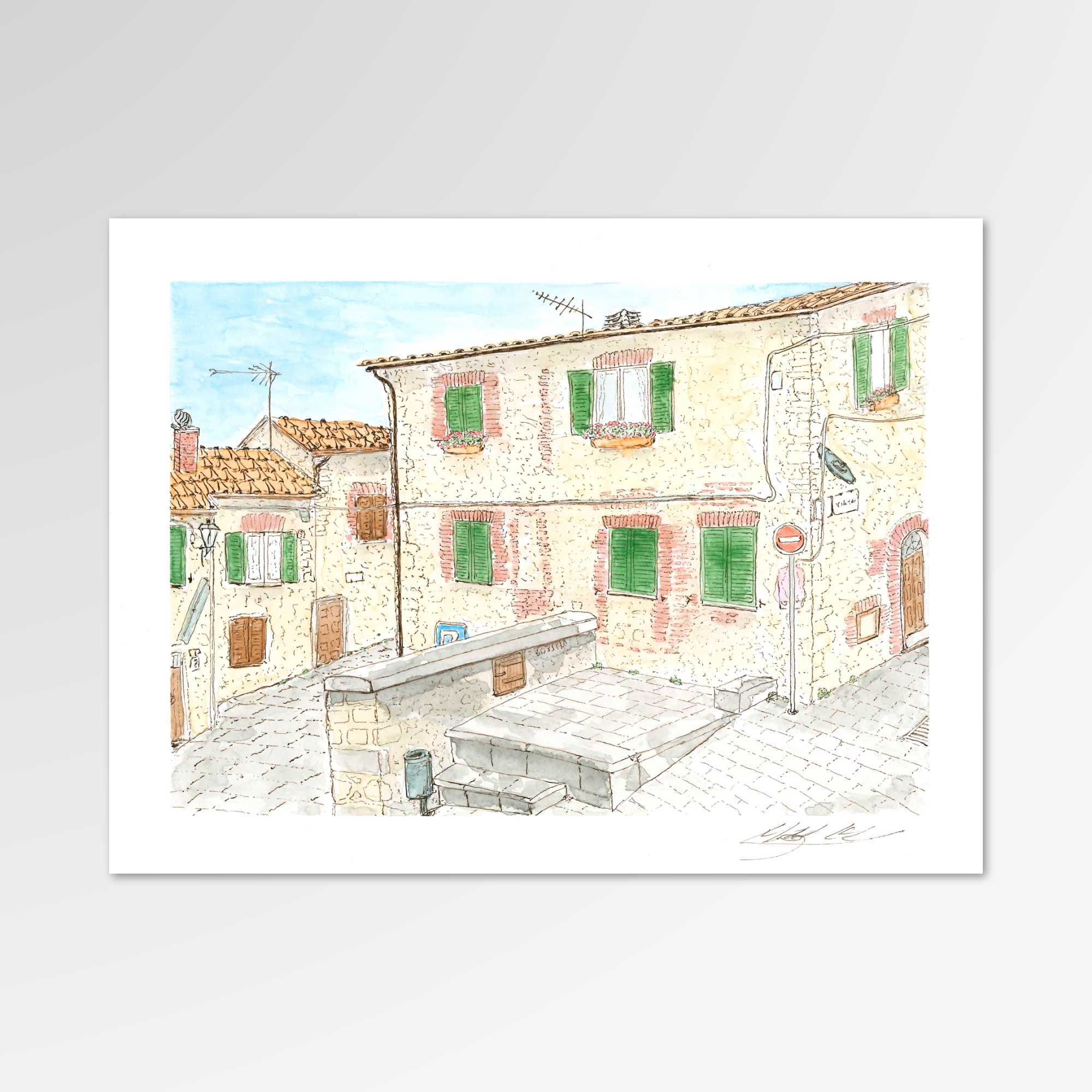 The piazza is the main place where everyone meets in the evening to catch up on the events of the day. Children run and jump off the steps while people eat in the restaurant nearby. This is a picture of one part of the piazza, and represents my first attempt at creating a panoramic of Pari. This piece, when combined with La Piazza Sinistra - I provides a glimpse into the way the streets and passages fold into one another, giving rise to the many layers of Pari.