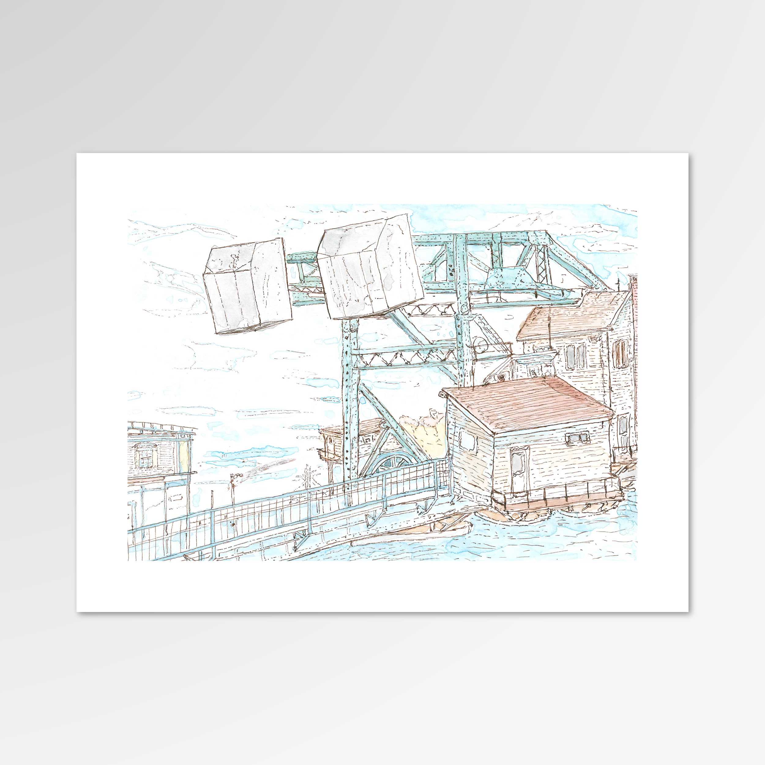 This was my first attempt at painting a sea scene. Visiting the Mediterranean reminded me of how much I missed the water, so I decided to paint this scene of the drawbridge in Mystic, Connecticut. When I was little, we used to visit Mystic as a family and watch the drawbridge go up and down. This painting required me to use a very different palette from what I had become accustomed to, with the blues and golds from the sea and sunlight.