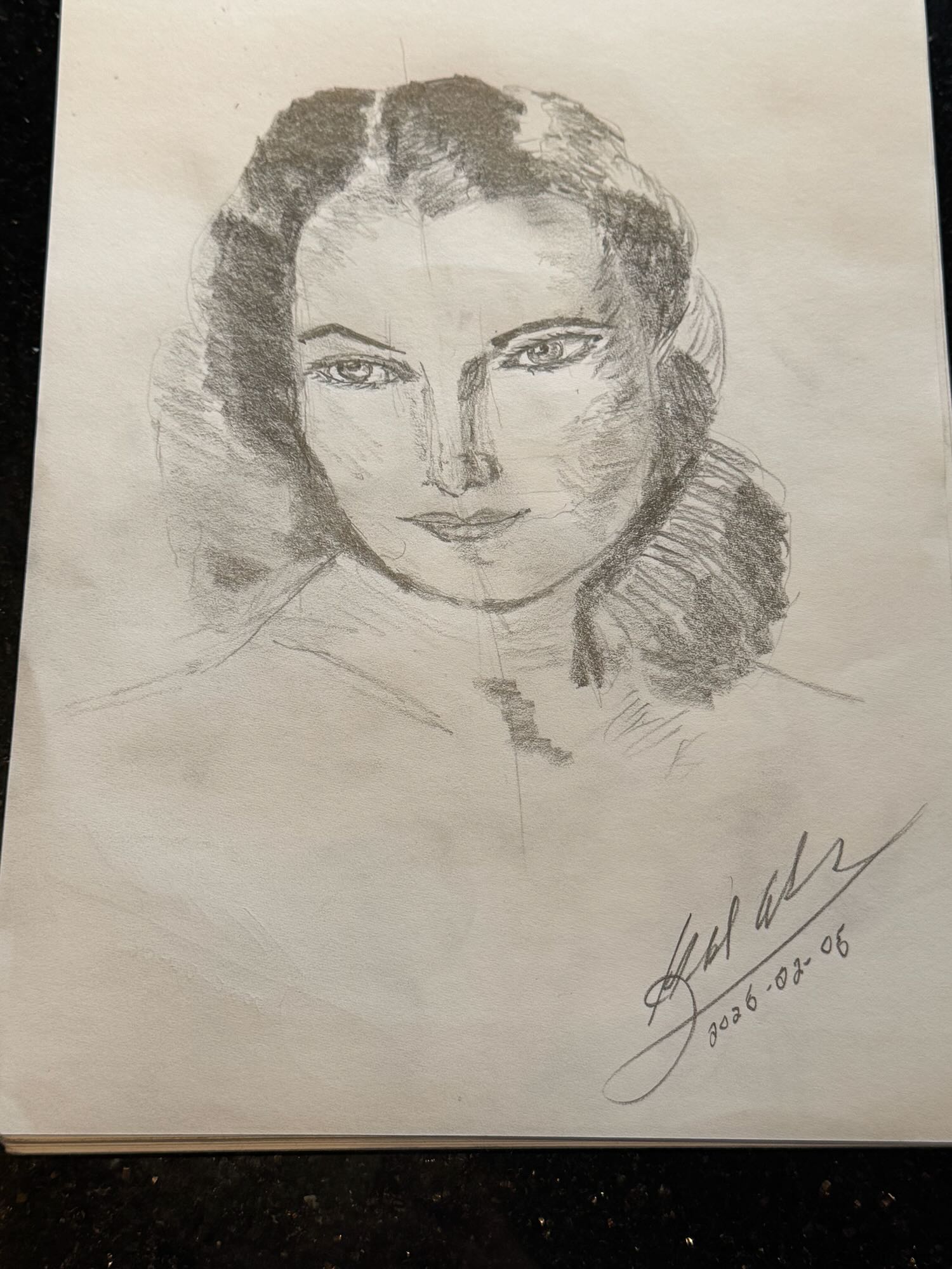 In this piece, I continued to work with the shading and made a commitment to stay away from line except for defining around the eyes and lips. I began having a bit more fun with the hair and texture, which allowed me to loosen up this drawing more than others that I had created to this point in my studies.