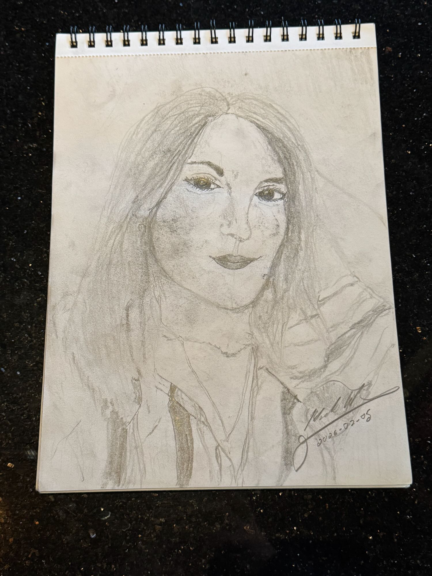 After working on the second portrait of my friend Lizzie, I decided to go back and check on the values in my other portraits. Sure enough, the eyes were too light for the overall depiction of the face. Here you will see the same portrait of Samantha as before, just with darkened eyes. The original is below for comparison.
