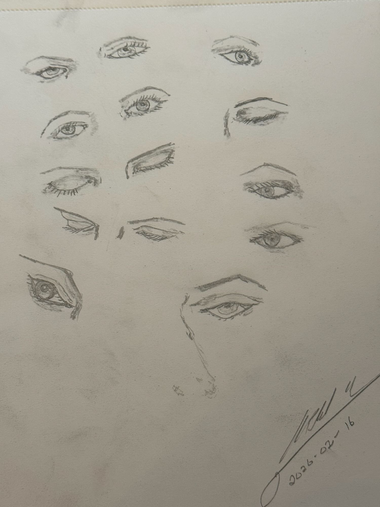 After my issues with the three-quarter profile view, I decided to branch out a bit and just focus in on eyes. As fate would have it, a group of children with their mothers were curious as to what I was working on, so I took the time to show them my sketches and the book I was working from. One of the girls remarked “nice job, you’re doing well”, which totally made my day as children see with their souls as much as their eyes.