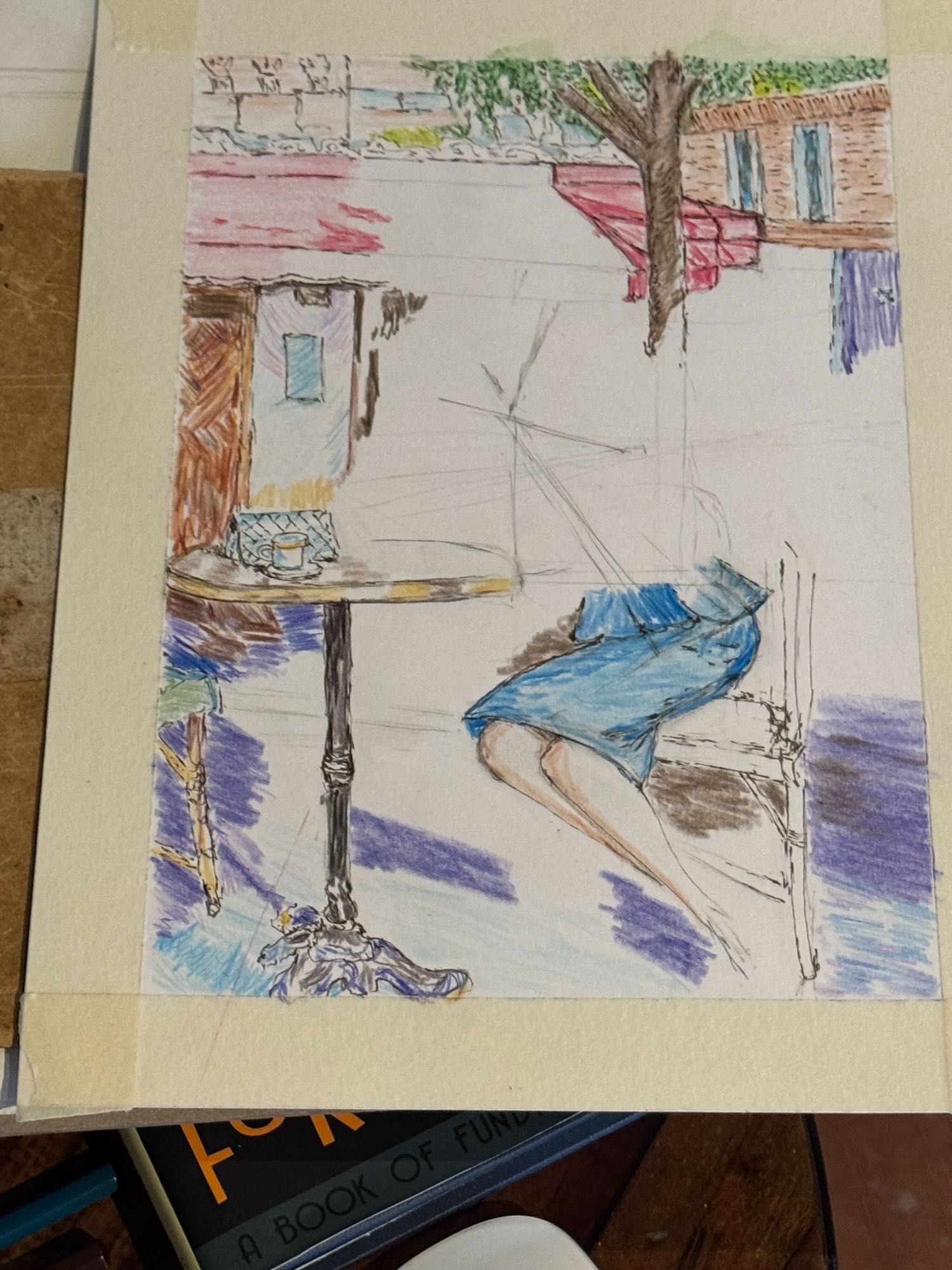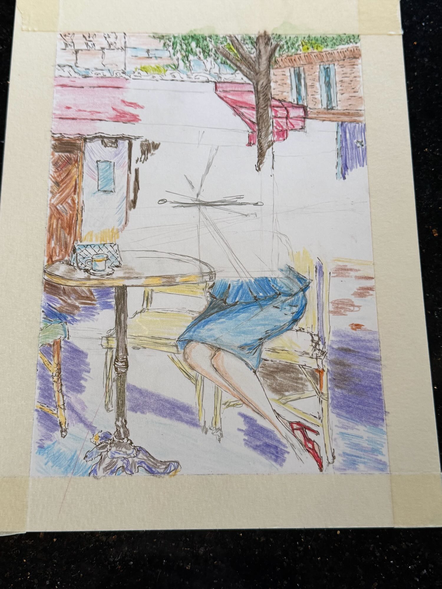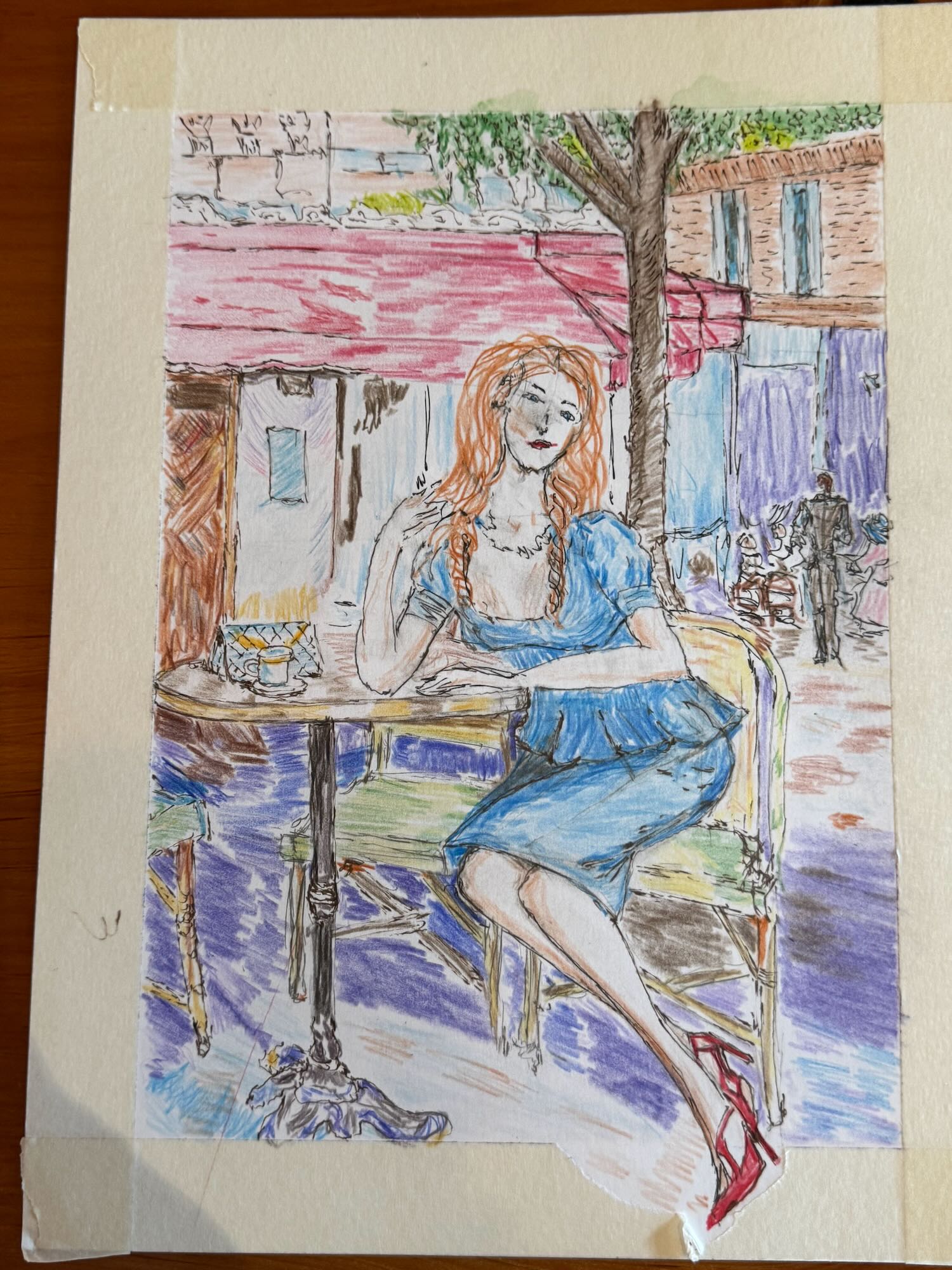 After working with the sketch from the previous evening, I decided to work with a full-color version of Razumov’s painting in colored pencil to work on my figure proportions, flow, and perspective. After a bit of sketching, I decided to add ink in as well.