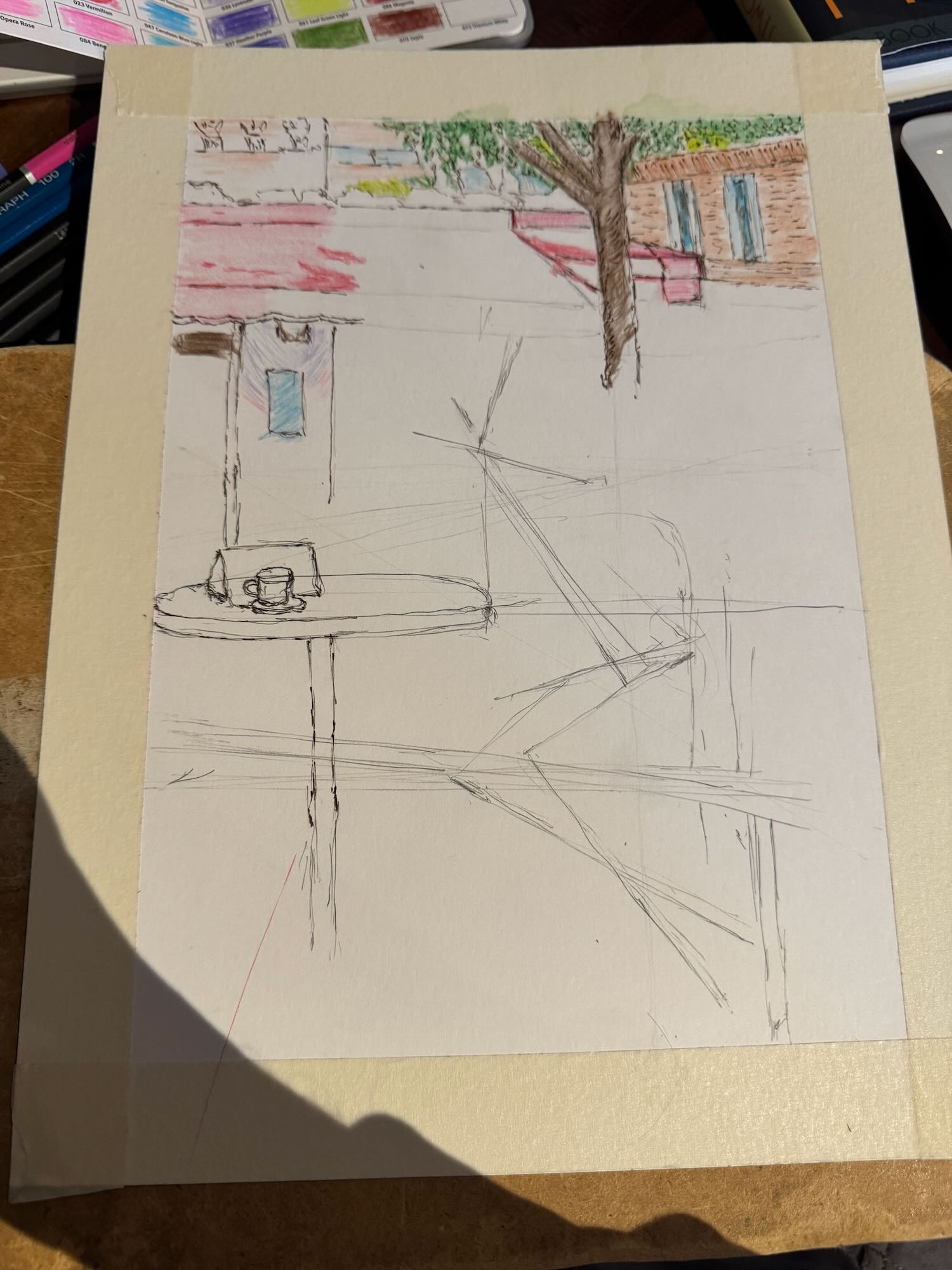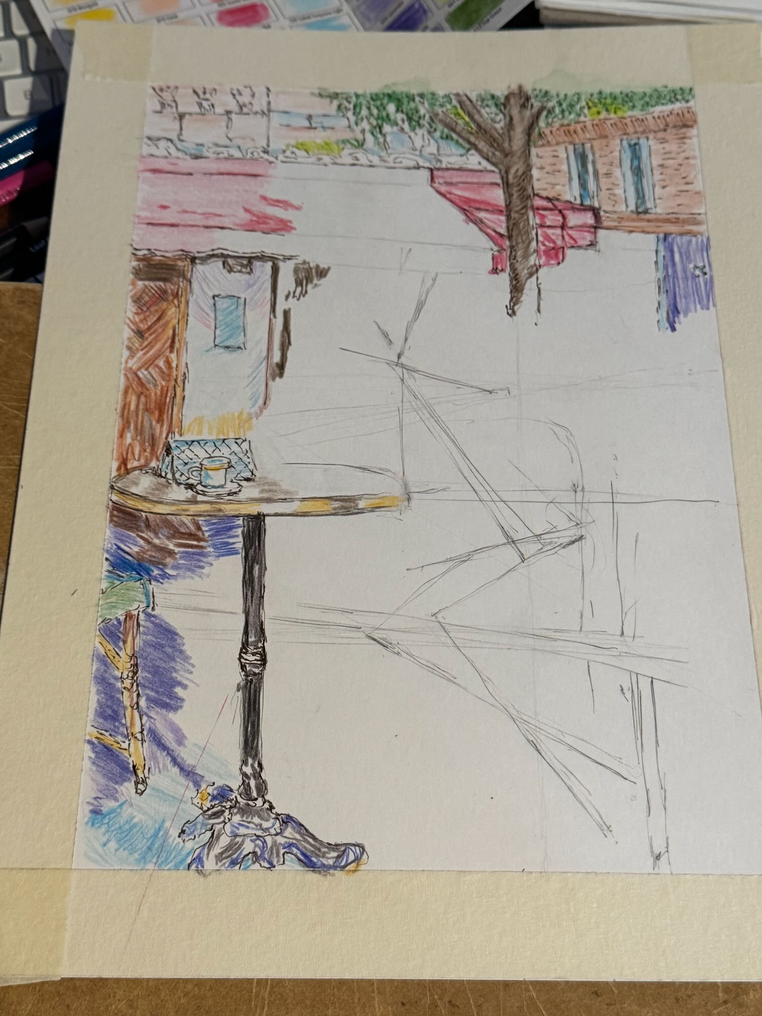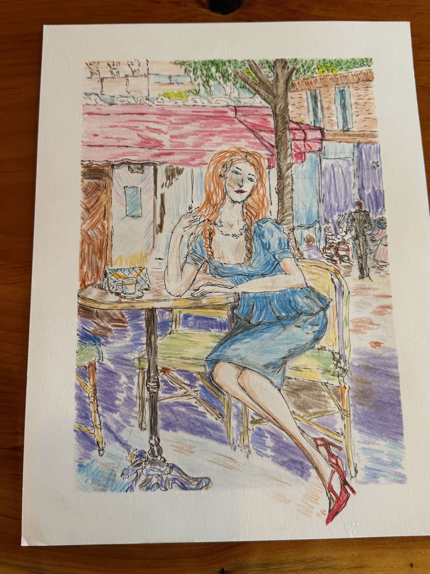 After working with the sketch from the previous evening, I decided to work with a full-color version of Razumov’s painting in colored pencil to work on my figure proportions, flow, and perspective. After a bit of sketching, I decided to add ink in as well.