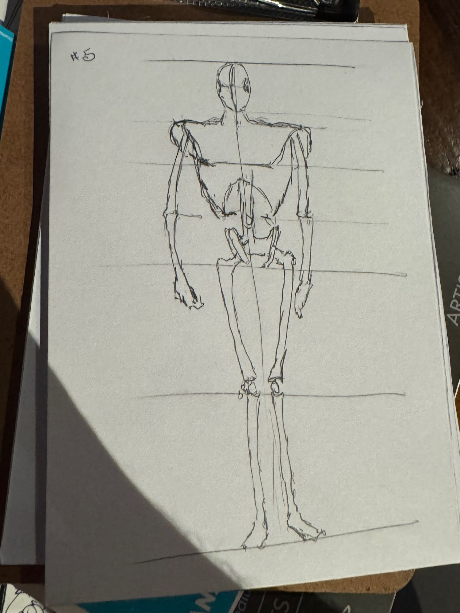 This was my second foray into figures and proportions. Here I began to work with basic bone structure instead of just lines - still working with the proportions of the male skeleton with different hips and cue angle on the knees.