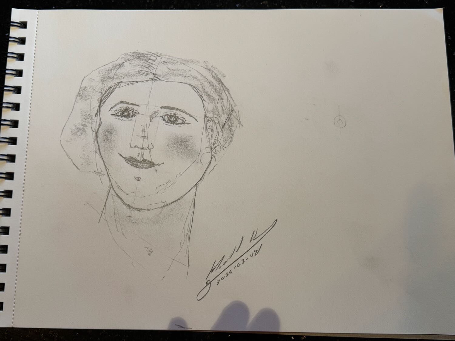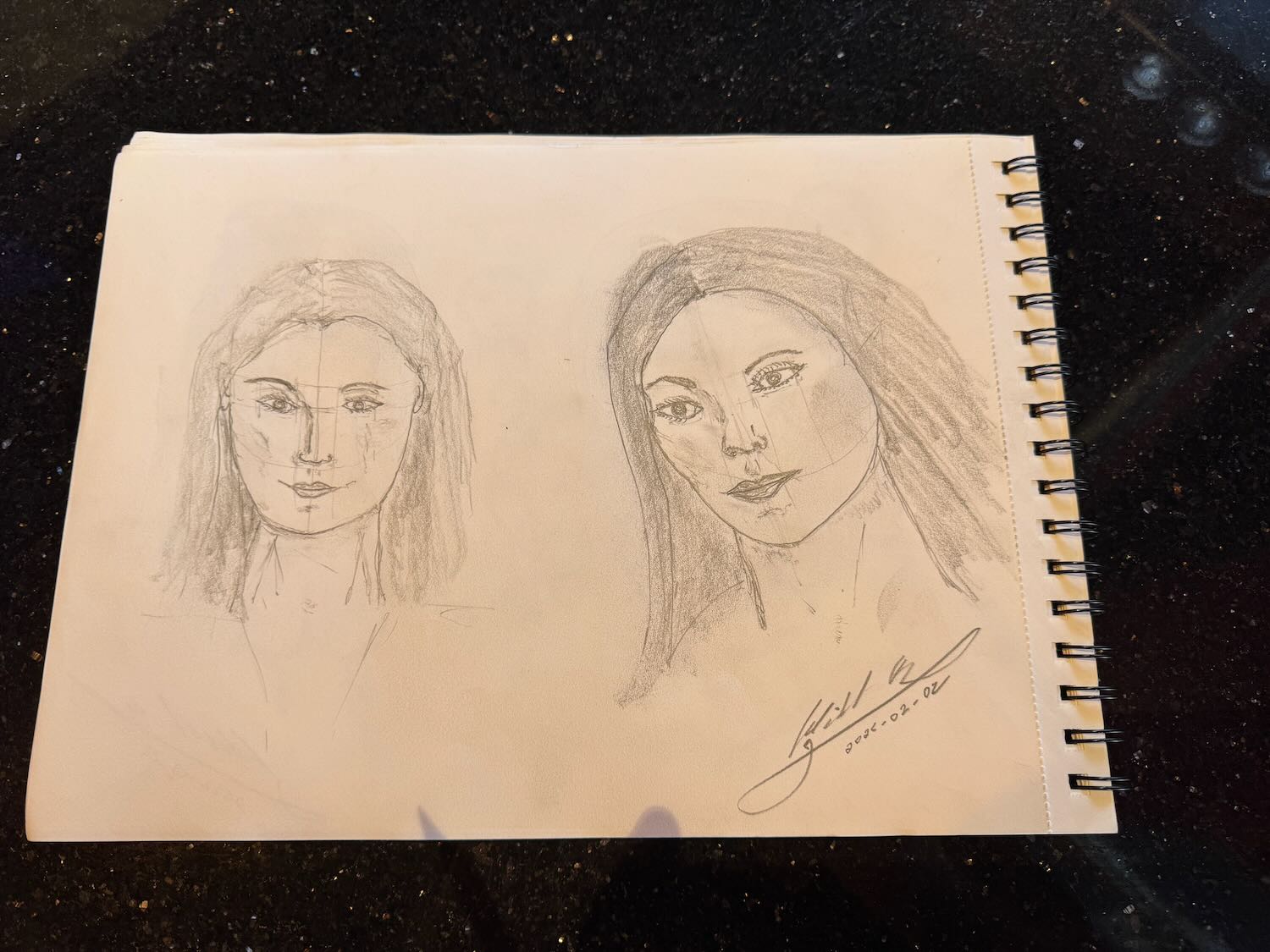 This morning, I continued working with portraits in pencil, mainly to practice proportions and positioning of the facial elements. I also paid more attention to shading, especially around the eyes and nose, to help define these features without relying upon the heaviness of lines.
