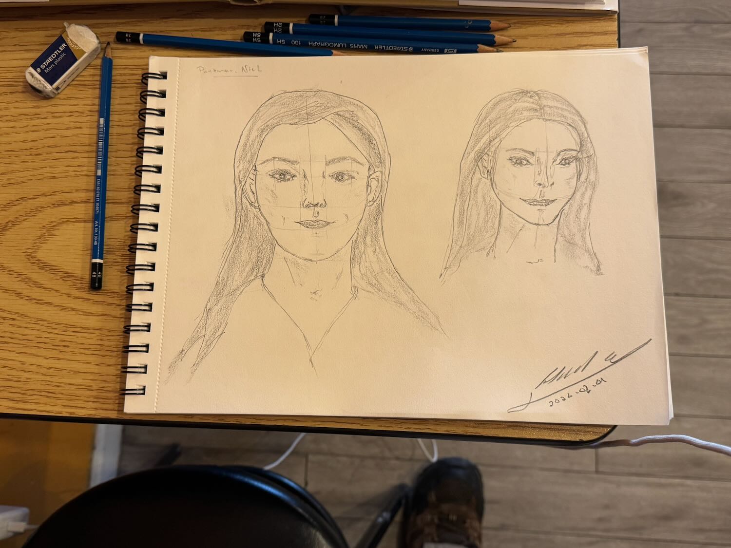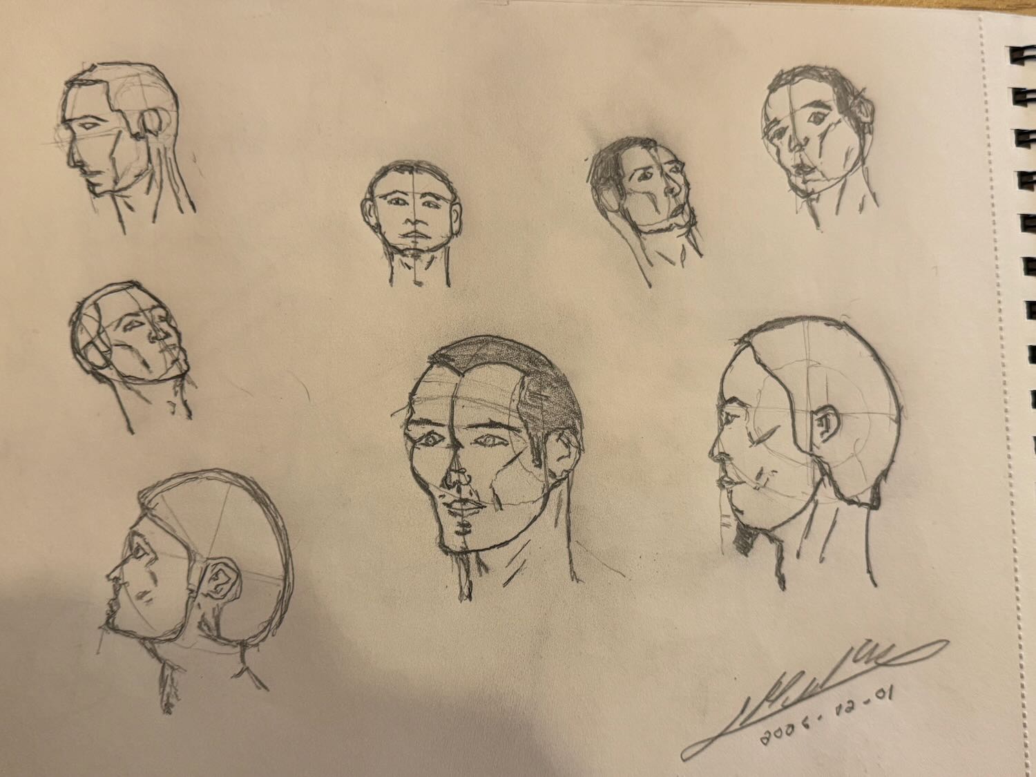 After working with the mockup of Razumov’s work, I realized that I needed to work on facial structures, proportioning, and neck alignment with my portraits. I began the day working with different facial angles in relation to the neck, and then progressed to several larger-format female faces.