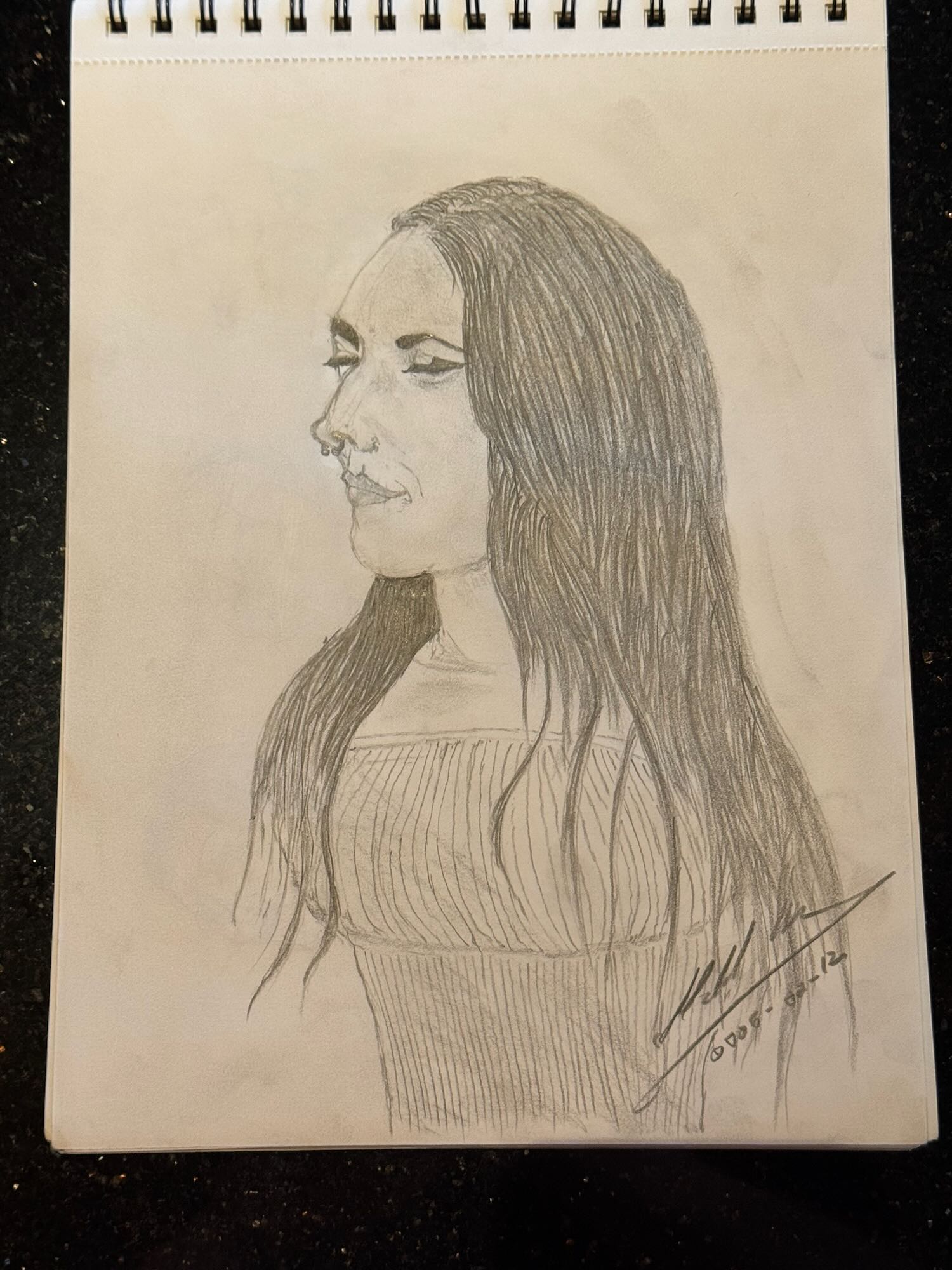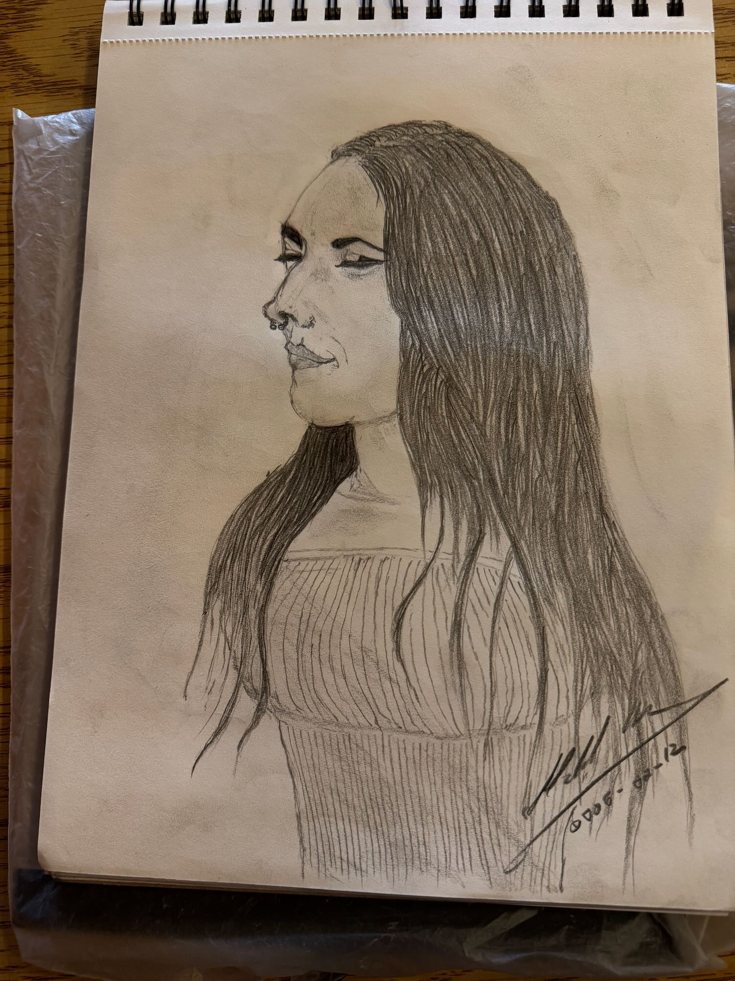 I am extremely grateful to my friend, Sara, who had the insight to ask whether I worked from photos and if it would help my work if she sent me a few of herself. This is my first attempt at creating a portrait of her, in profile nonetheless. I can honestly say that this is the first profile of a person that I know that I am pleased (and even pleasantly surprised) with how it came out. I will most likely attempt another version of this with some combination of black and colored pencils.