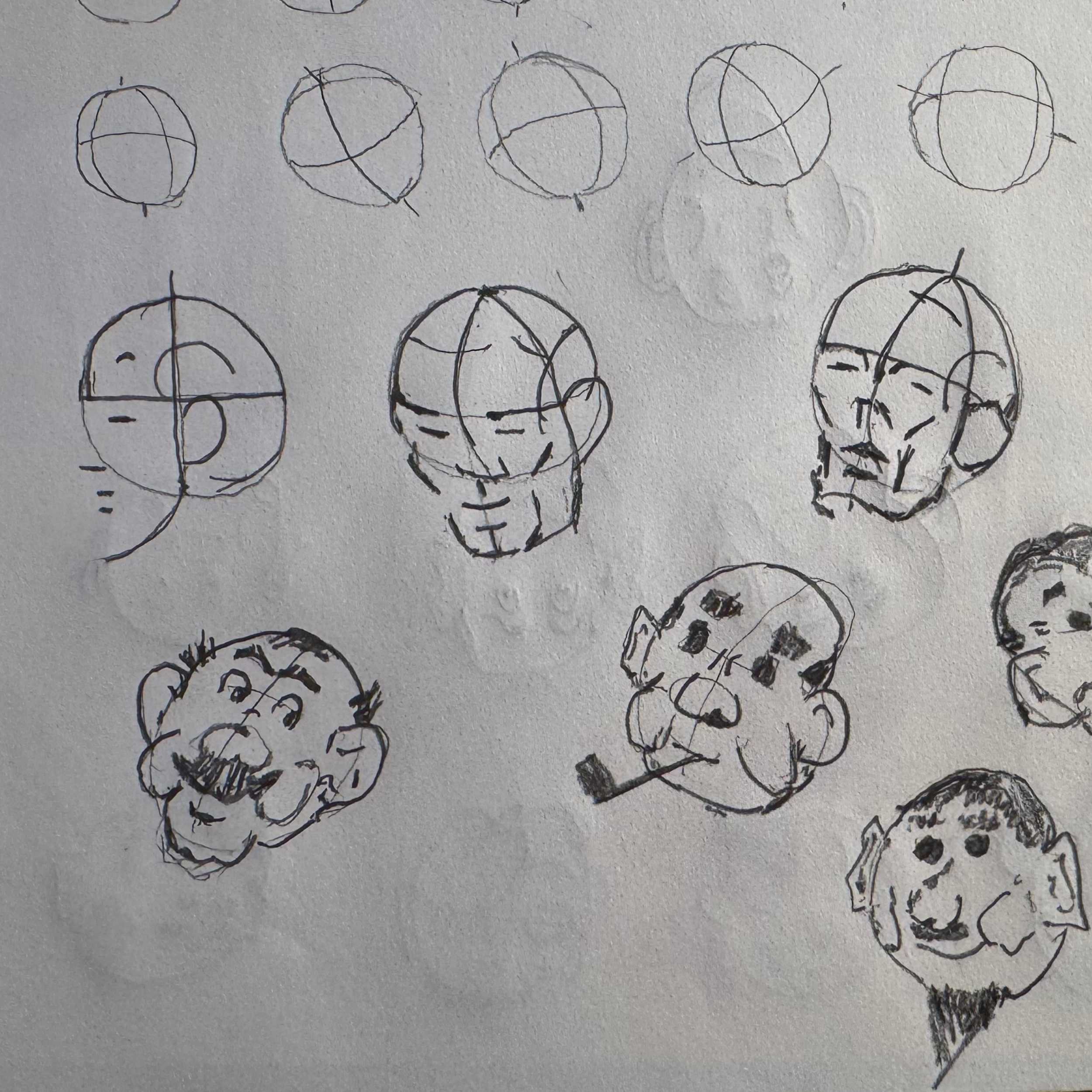 After my forays into portraits, I decided to lighten things up by practicing some characters from Loomis’ work, Fun with a Pencil. I wanted to get back to a sense of playfulness and curiosity instead of focusing on specific angles and proportions. Of course, Loomis also uses a similar approach to characters as he does for portraits, so the practice is still bound to affect my other modes of expression.