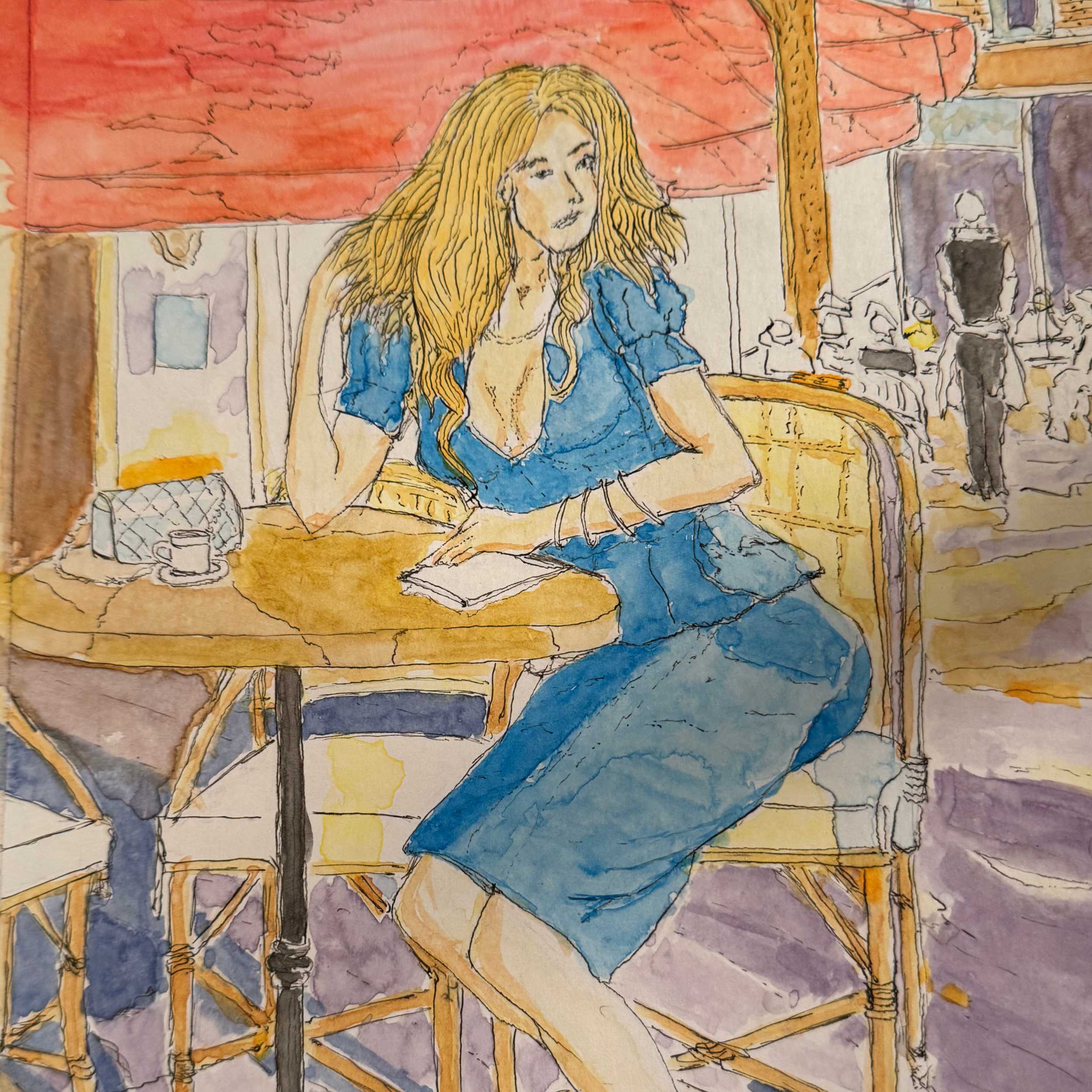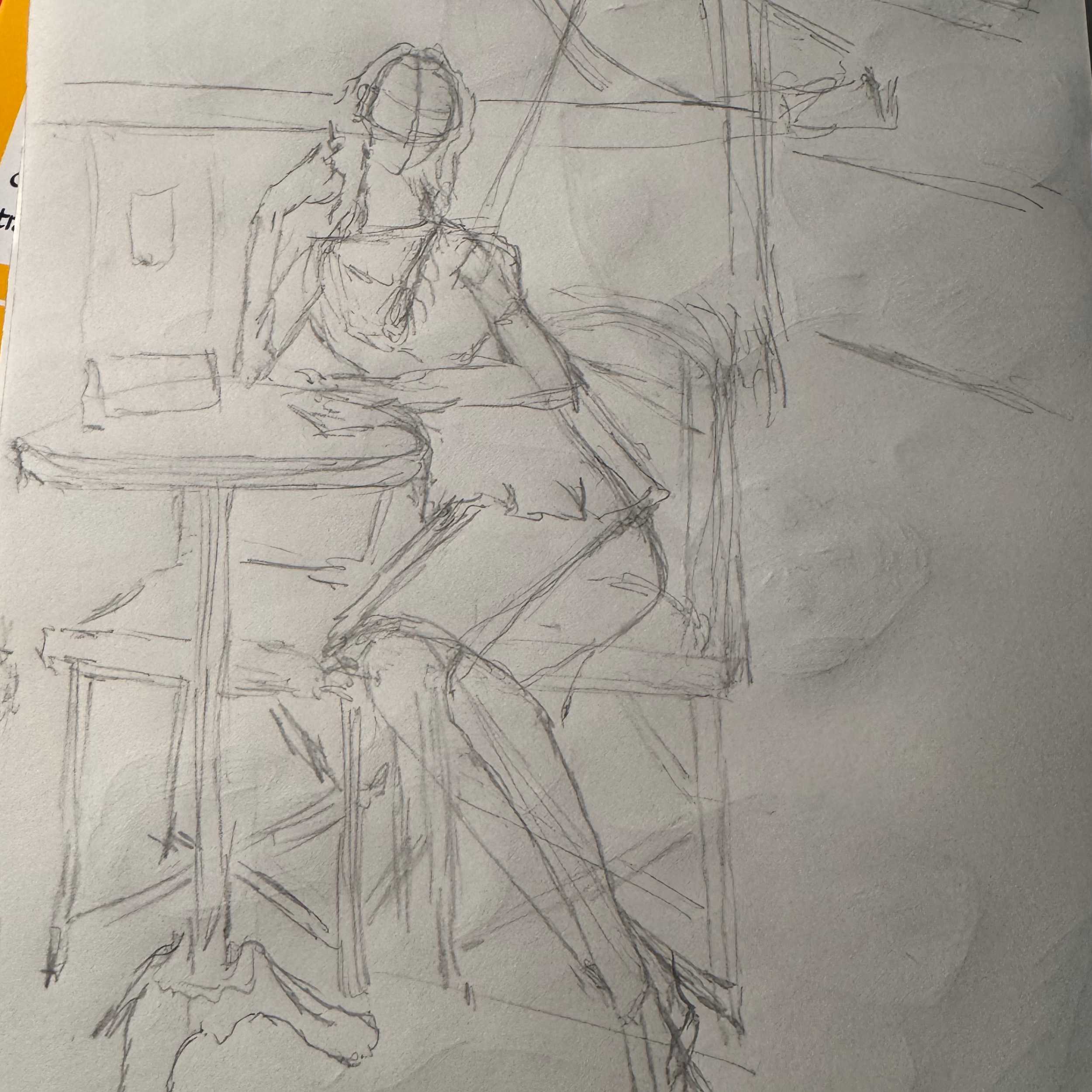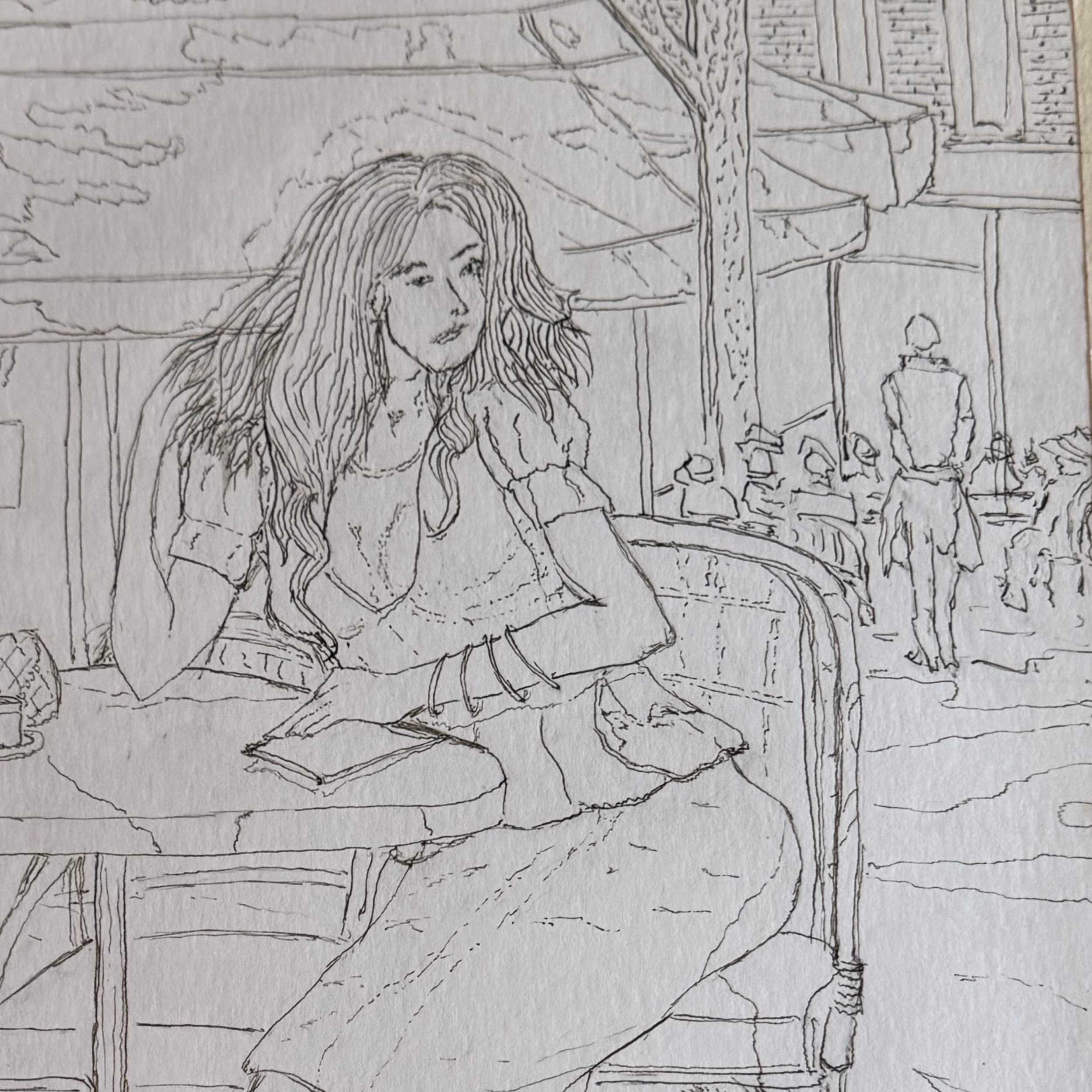 After working with the colored pencil, I decided to go back and do another rendition of Razumov’s work depicting a woman at a café. Thanks to all my pencil work, I noticed that I have an even lighter touch than before — allowing me to add in detail while letting the piece breathe.