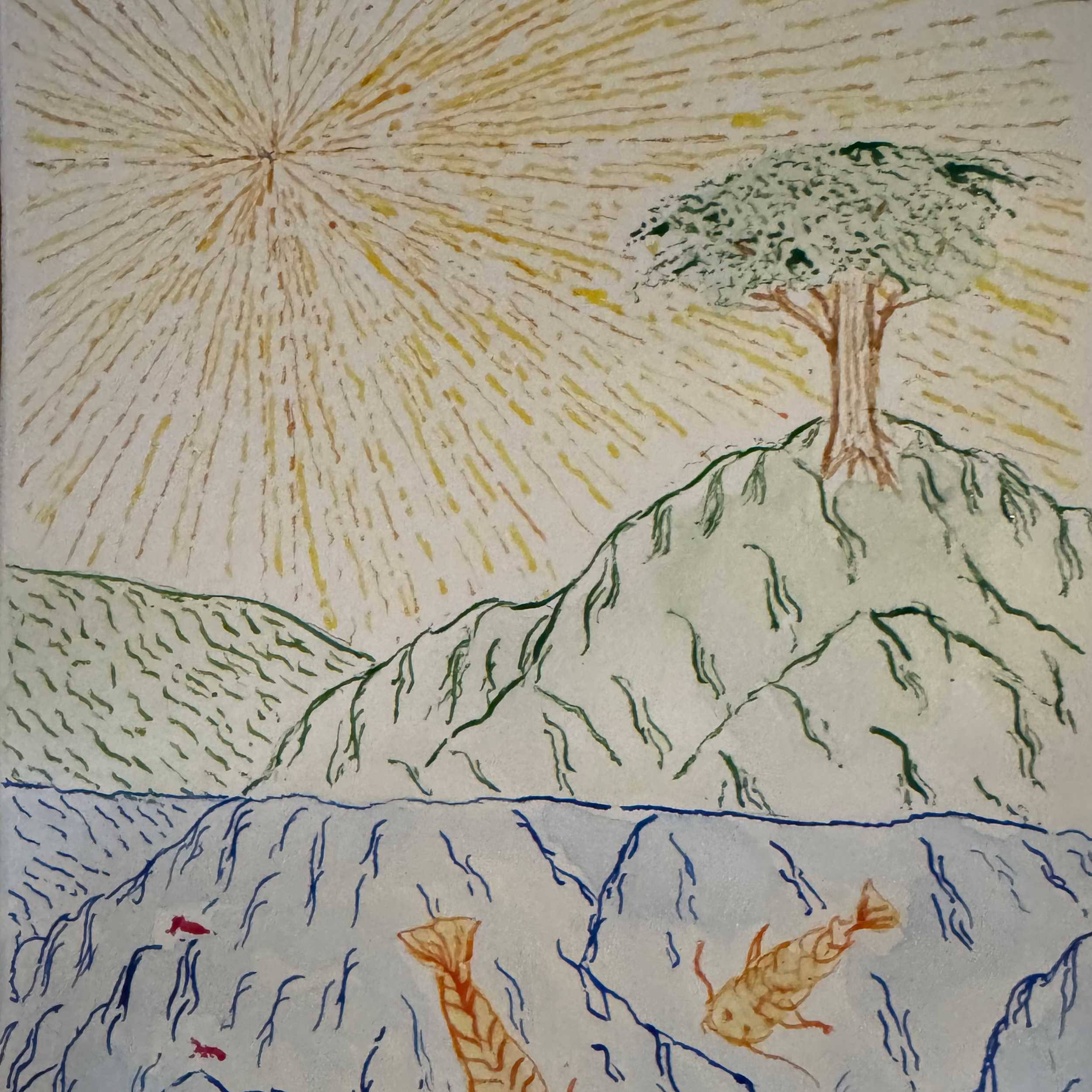 This was my attempt at creating a colored version of The Star XVII, a card found within the tarot. Like the ink work from yesterday, I drew my inspiration from the Japanese woodblock prints to play with different ways of creating texture with the pen.