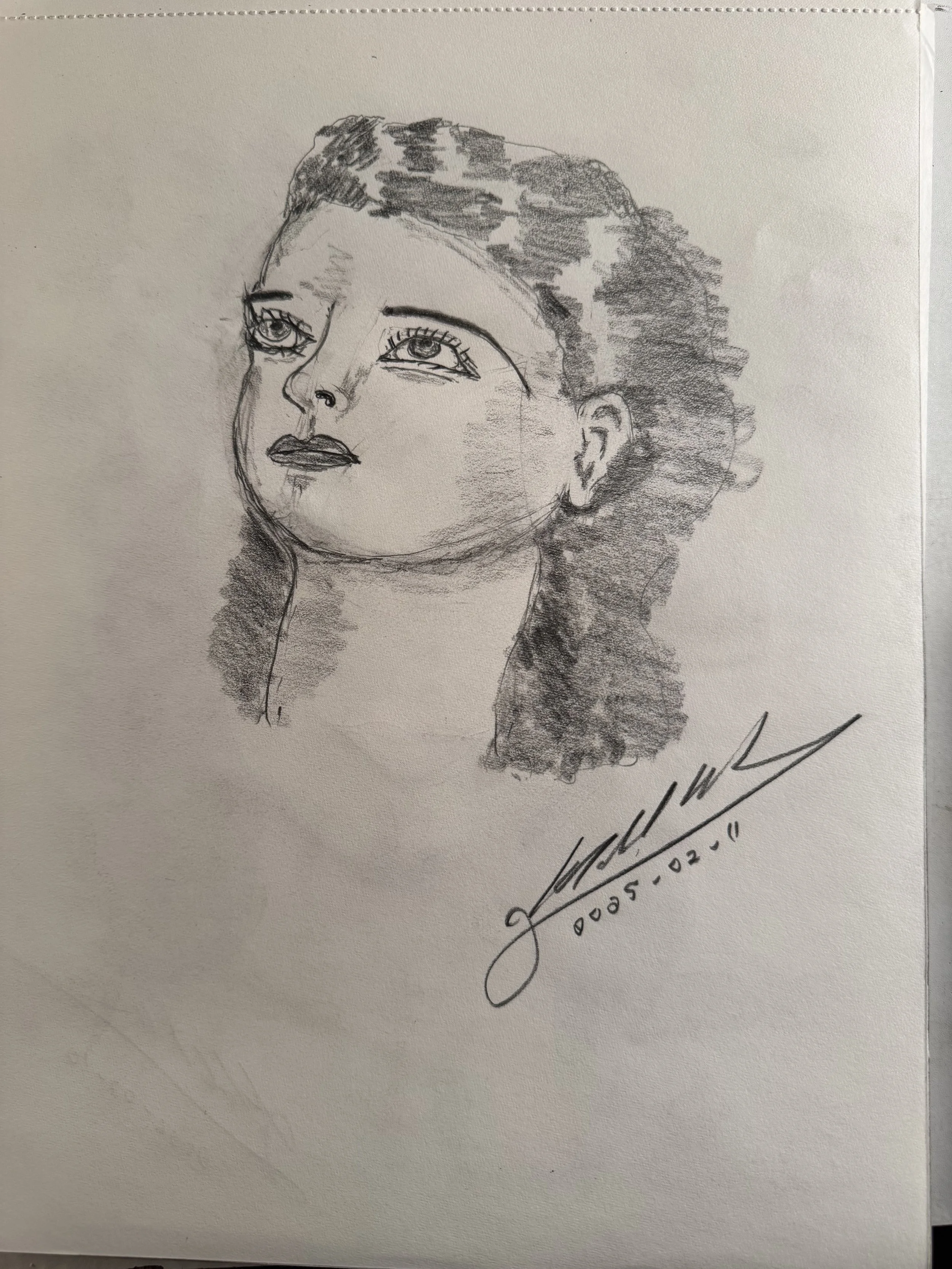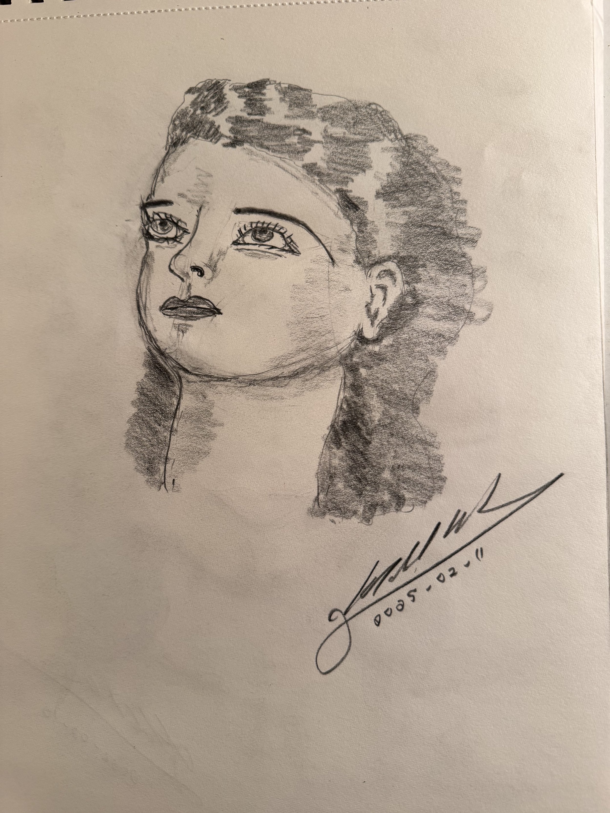 This was my second attempt with using the Staedtler Mars Lumograph Black pencils. This time, I decided to work with a profile. As you can see, I mis-measured the distances and proportions of the face. By not placing the chin down far enough, this portrait fell into the proportions for the face of an infant — hence its title.