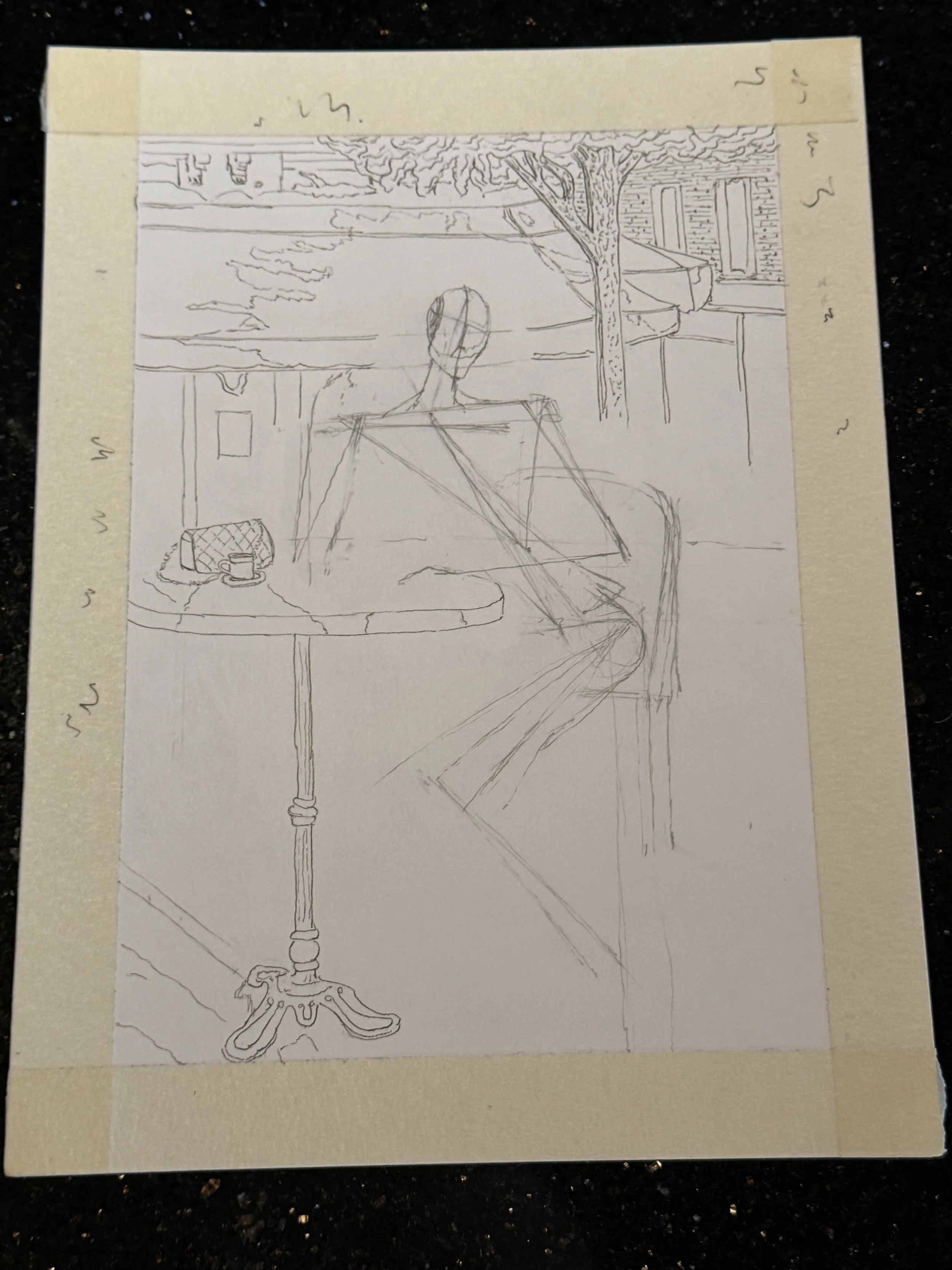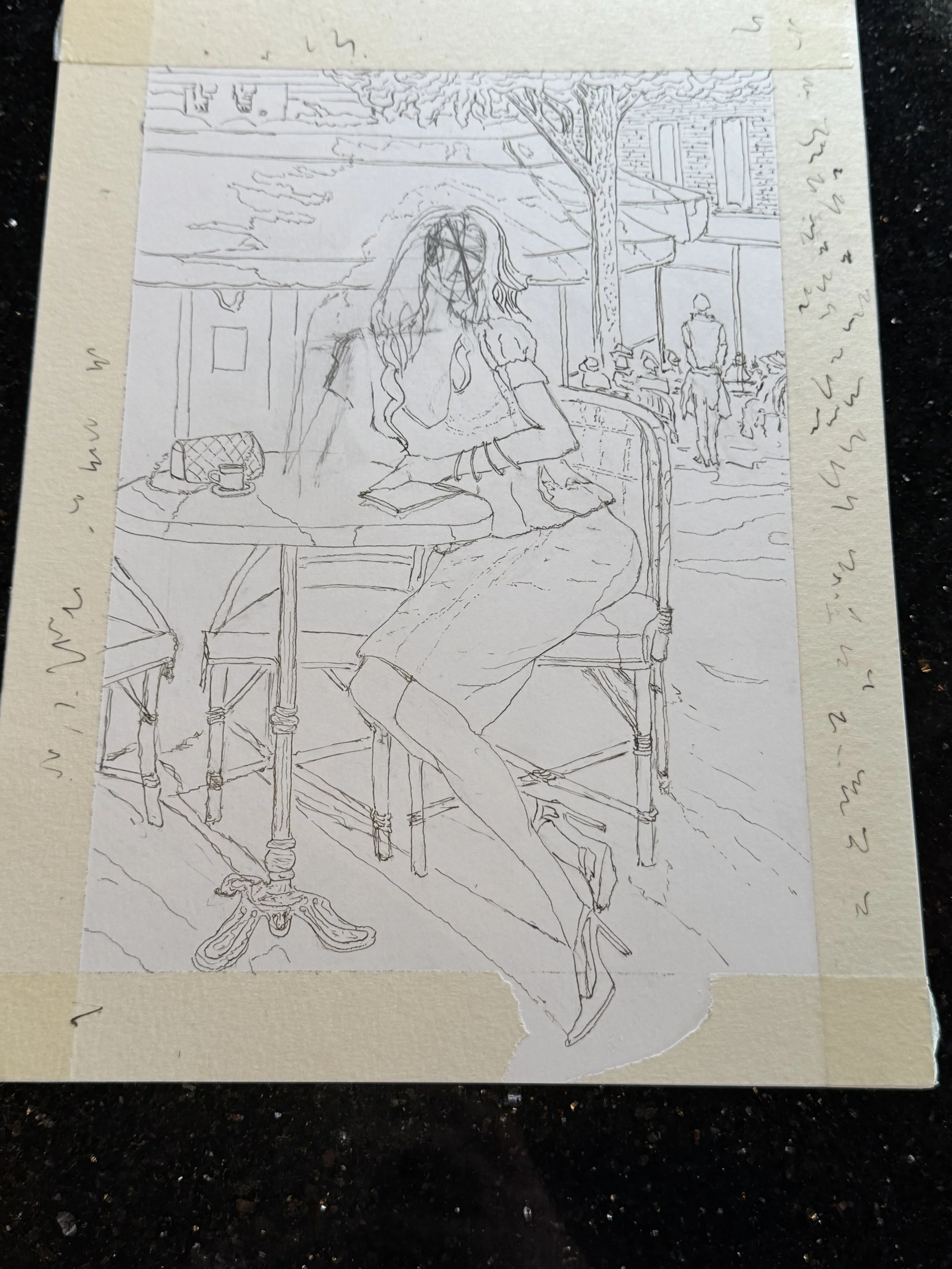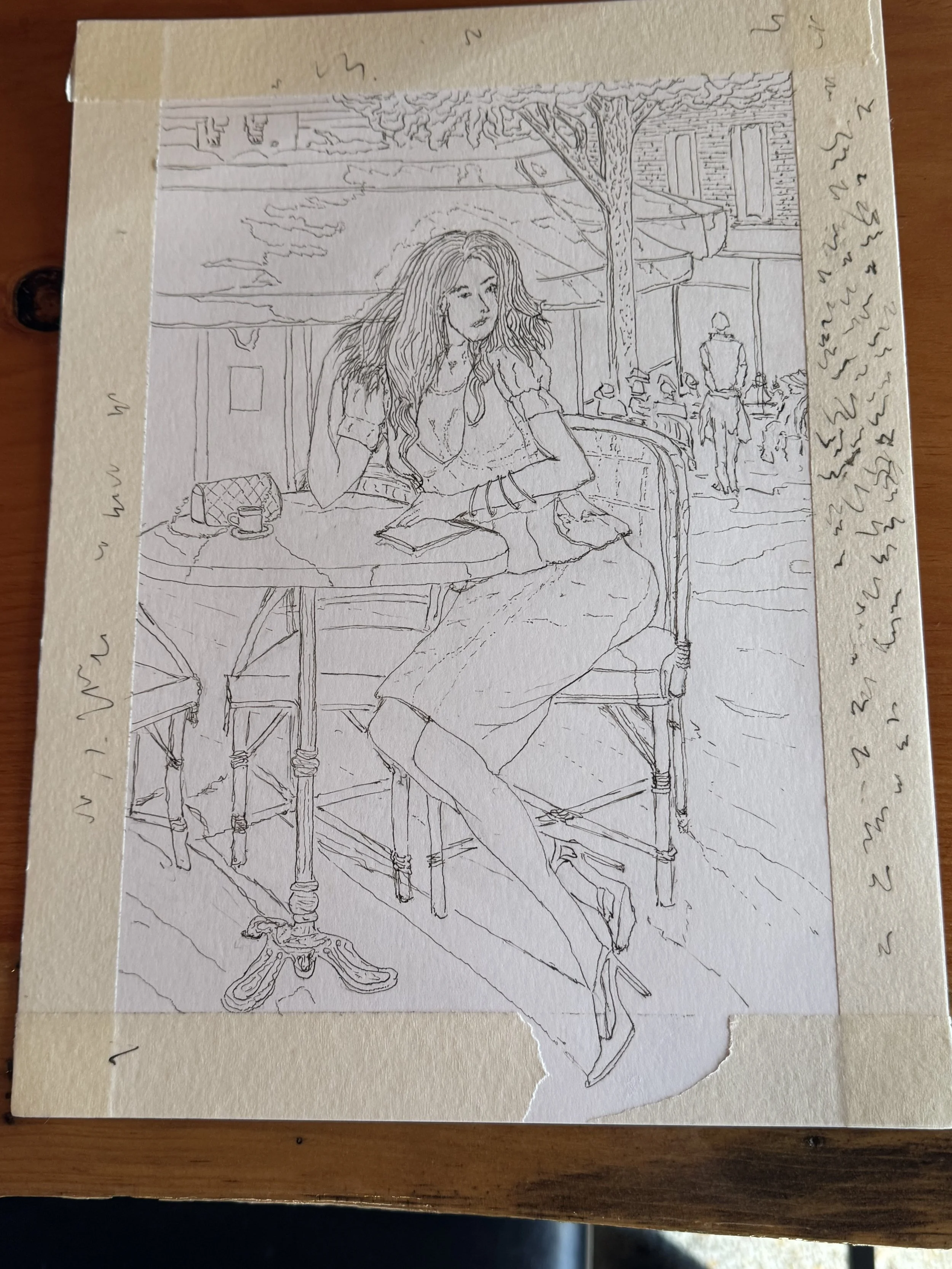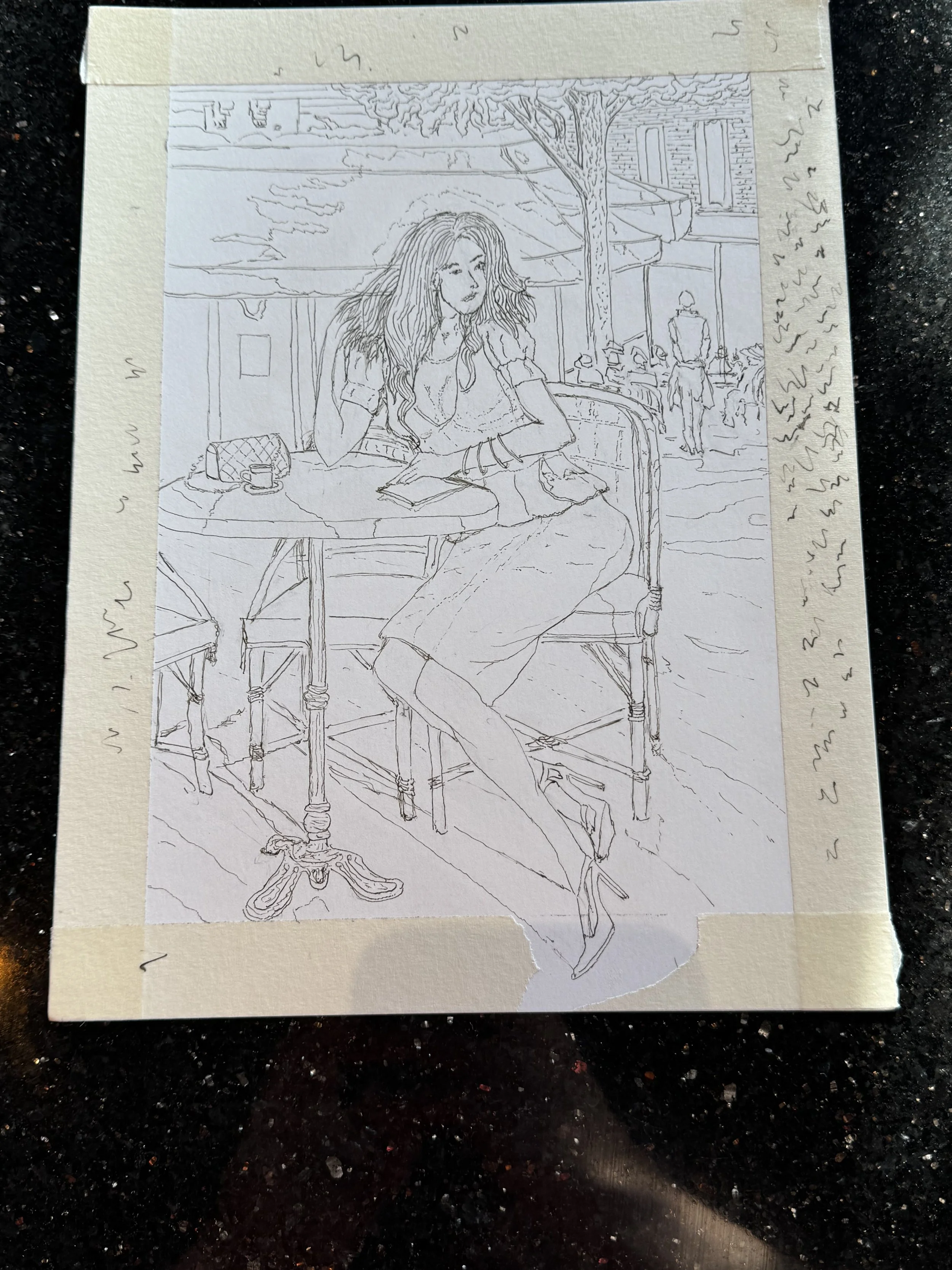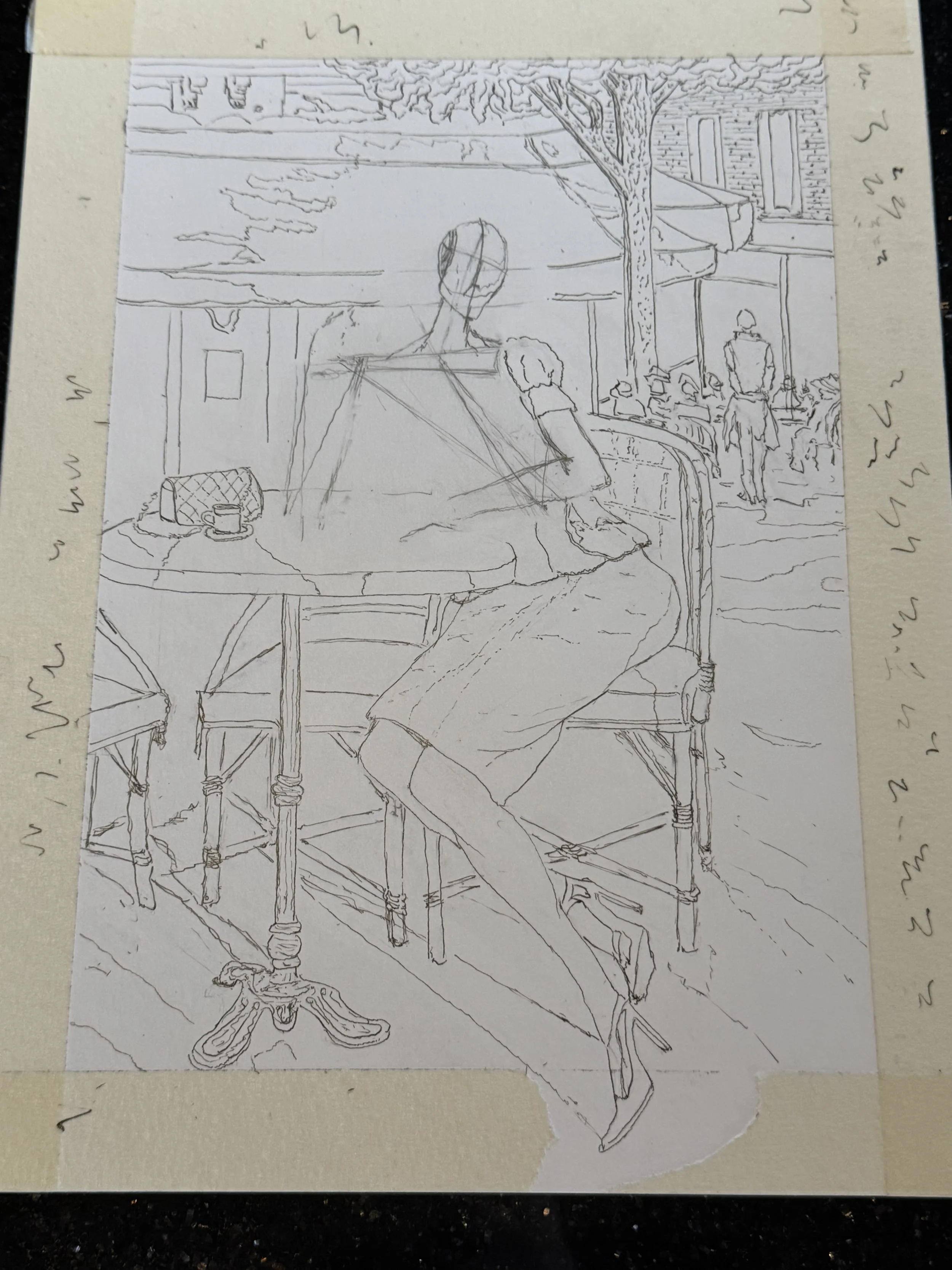 After working with the colored pencil, I decided to go back and do another rendition of Razumov’s work depicting a woman at a café. Thanks to all my pencil work, I noticed that I have an even lighter touch than before — allowing me to add in detail while letting the piece breathe.